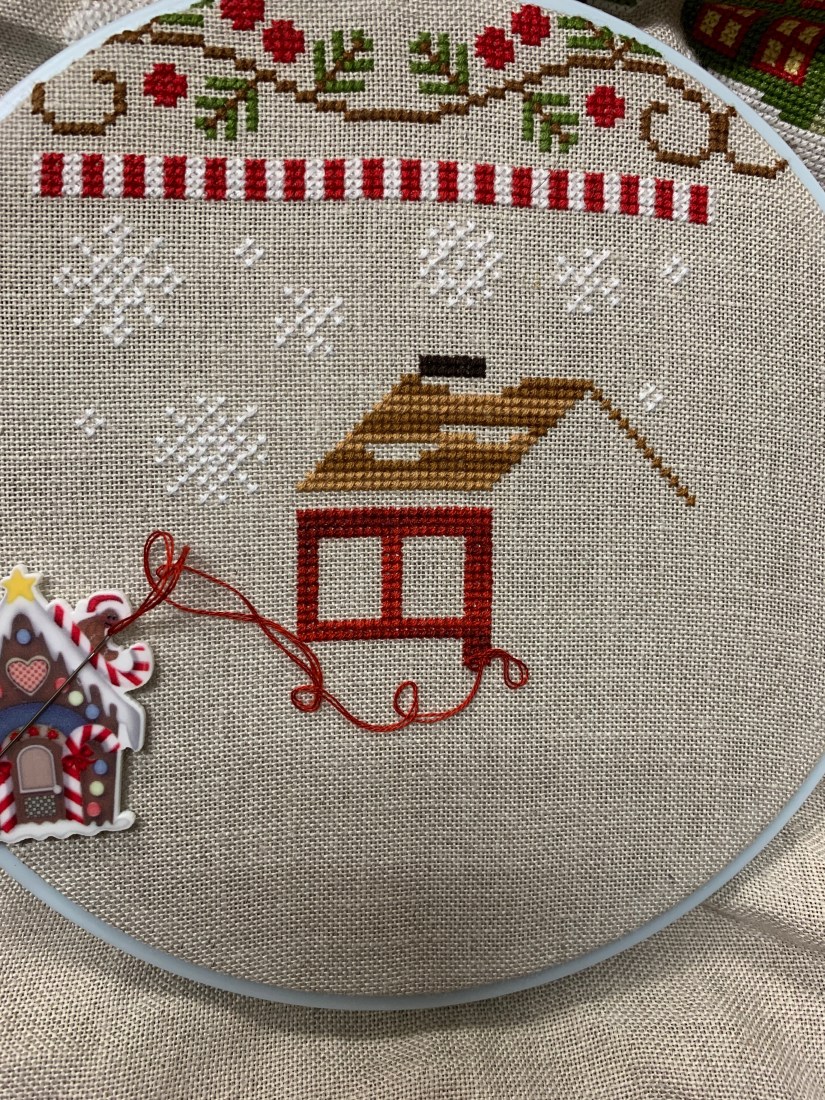 I was also able to get another building finished on my Country Cottage Needleworks Santa’s Village. I was working on it as part of a stitch a-long (SAL), where we were stitching one a month. LOL I did great until April and things became a bit scattered. I am about halfway done with the fifth house. I’d like to have this finished before Christmas this year so I can display it. It’s so stinking cute!